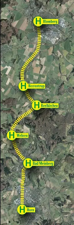 Das Projekt: Vor allem auf Betreiben des früheren Blomberger Bürgermeisters Dr. Volmer wurden 1924 Gespräche mit der Paderborner Elektrizitätswerke- und Straßenbahn-AG (PESAG) aufgenommen, die damals unter anderem die Linie zwischen der Domstadt und Horn betrieb. Die Idee: die bestehende Strecke von Bad Meinberg bis nach Blomberg weiterzuführen.