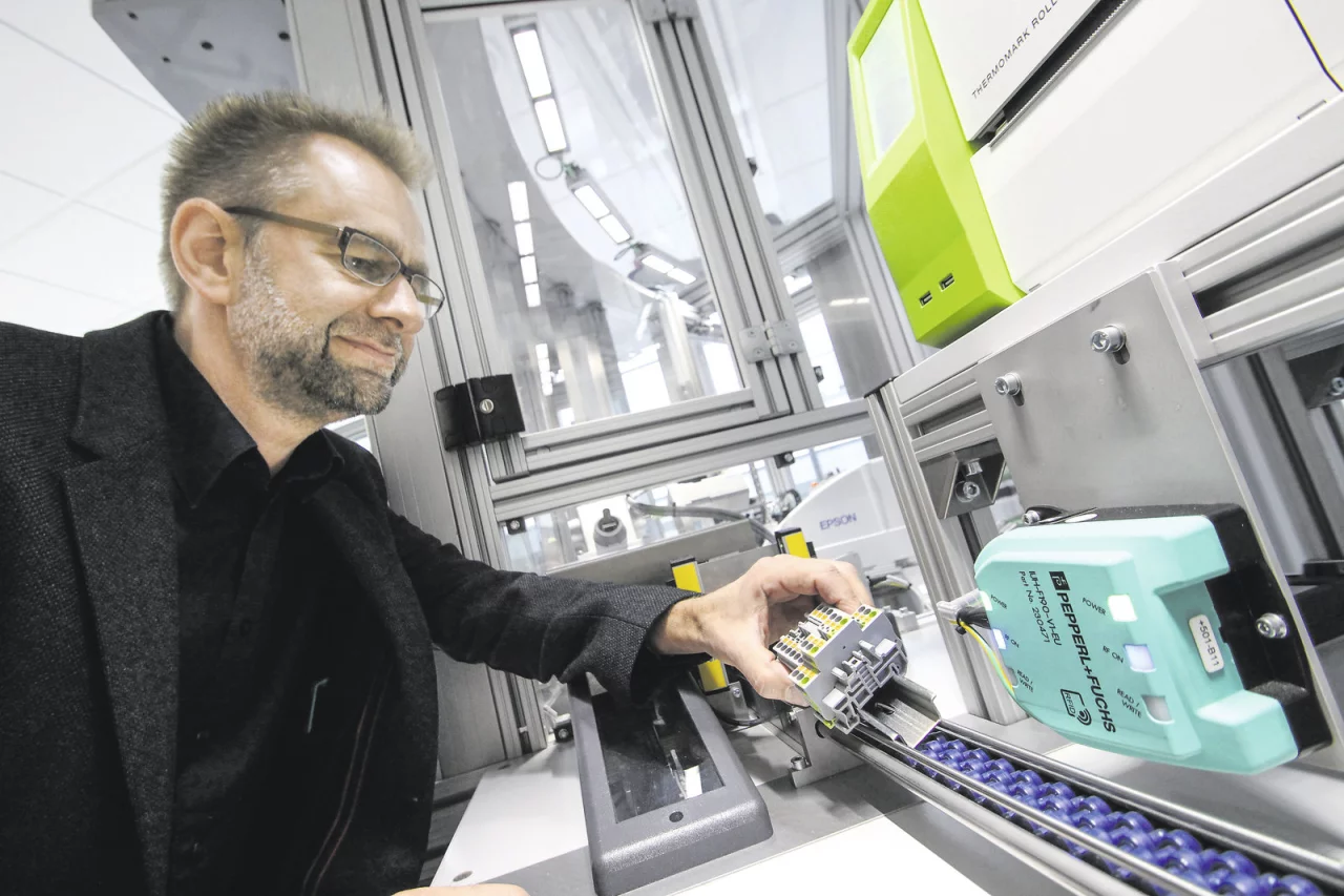 - Gekennzeichnet mit einem RFID-tag können alle Maschinen in der Produktionskette die Produktbeschreibung abrufen. „Der RFID-tag funktioniert wie der Fahrgestellnummer beim Auto. Mit ihr ist das Produkt komplett zurückverfolgbar", erklärt Andreas Schreiber.