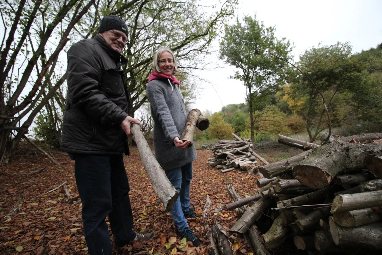Christiane Stolz und Bernhard Brautlecht führen durch das Gelände. Stolz hat im Vorjahr das Vorstandsamt von Brautlecht übernommen, der den Nabu in Ostlippe in den vergangenen Jahrzehnten mit viel Herzblut aufgebaut hat. Das Duddenloch sei schon immer ein kleiner Diamant gewesen, schwärmt Brautlecht. „Vor 40 bis 50 Jahren haben die Bewohner der Stadt ihre außerhalb liegenden Grundstücke noch mit Hecken abgegrenzt", sagt er und deutet auf eine Reihe linear angeordneter, meterhoher Bäume. „Und das passiert, wenn man diese nicht schneidet."