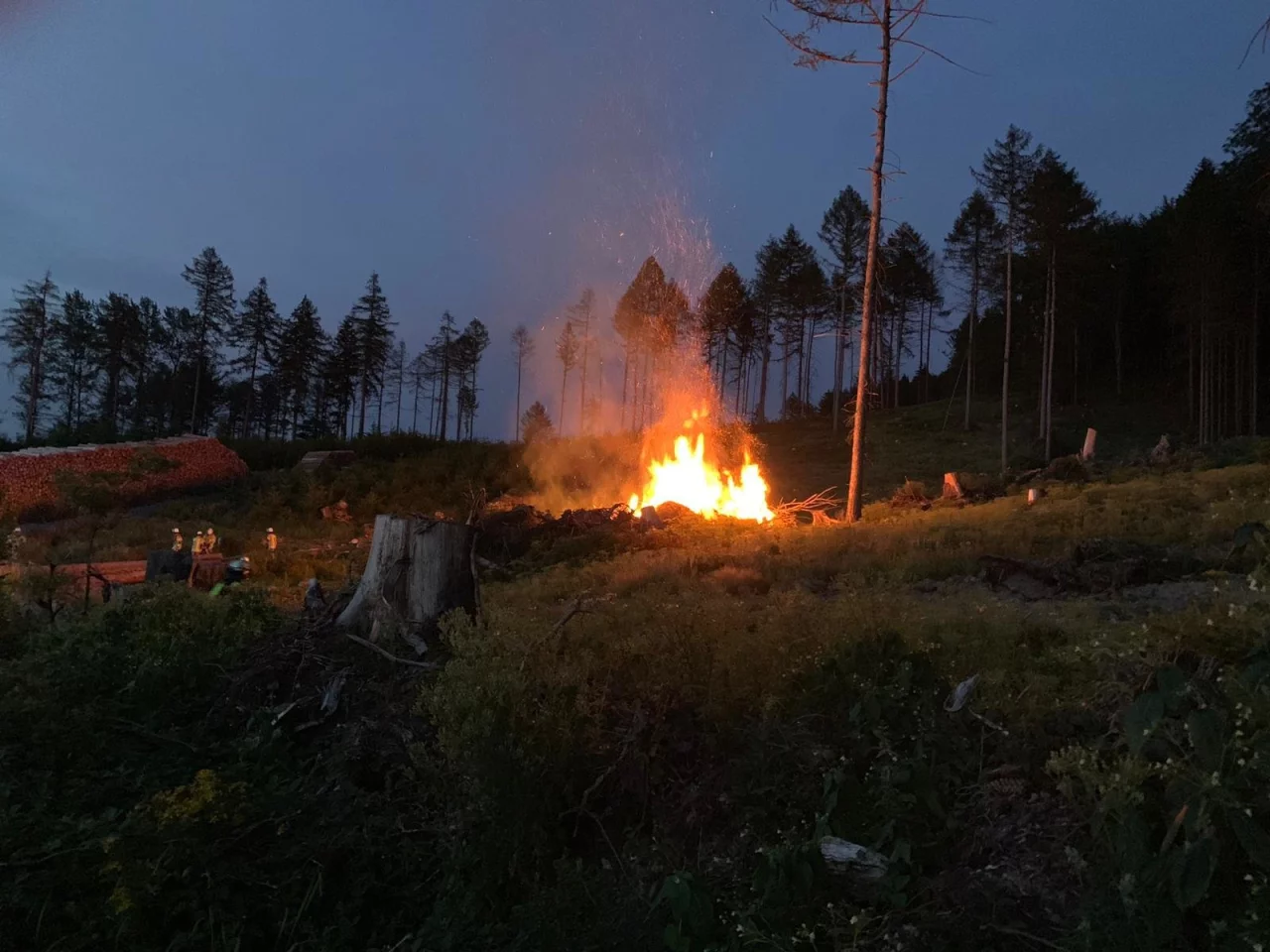 Blomberg-Eschenbruch. Später Einsatz für die Blomberger Feuerwehr am heißesten Tag der Woche. In der sogenannten Teufelei (K61) brannte nach Angaben der Blomberger Wehr ein Holzstoß auf einer Fläche von fast 30 Quadratmetern.