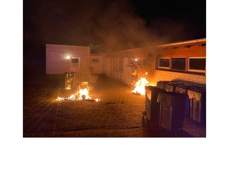 Am Kindergarten standen einige Mülltonnen in Flammen. Anwohner hatten bereits weitere Tonnen vom Gebäude entfernt. Wäre der Brand nur einige Minuten später bemerkt worden, hätte das Gebäude des Kindergartens ebenfalls Feuer gefangen.