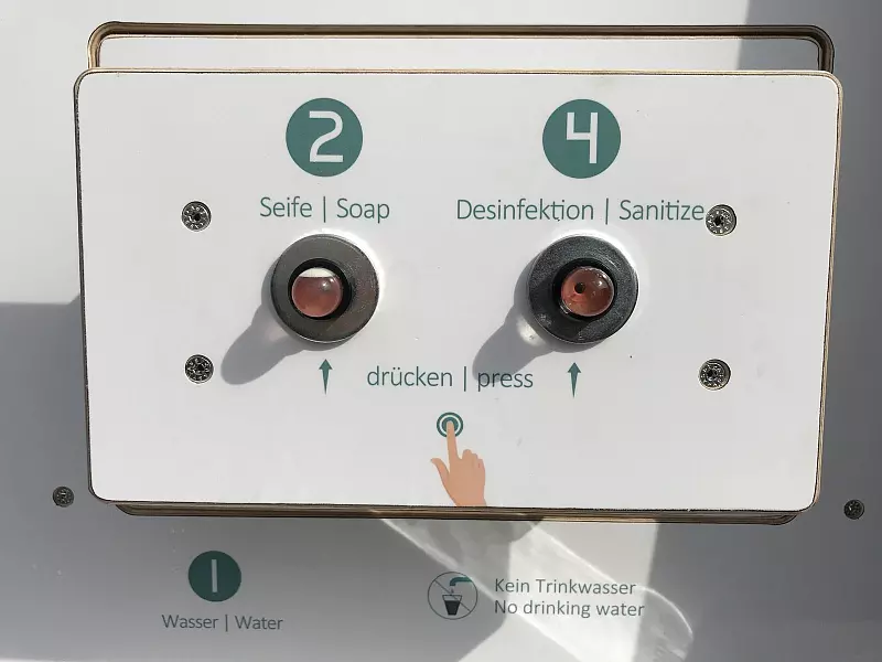 Als sechsstellig beschreibt Falk Trompeter die Entwicklungs- und Produktionskosten bis jetzt. "Die Stationen sind praktisch überall einsetzbar. Innen und außen." Er kann sie sich bei Events, in Supermärkten und Schulen, natürlich auf Baustellen und anderen Arbeitsbereichen, beinah überall vorstellen. Mit der Spende wolle er auch ein Zeichen für Handhygiene im Alltag setzen, damit das öffentliche Leben wieder hochgefahren werden könne.
