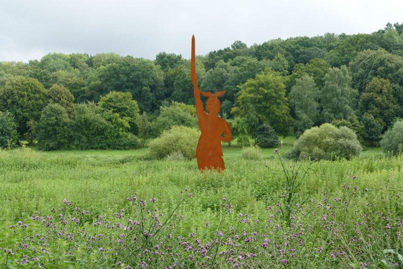 Künstler Hans Kordes aus Verl ist für seine "Hermänner" aus Stahl bekannt. Weit mehr als 30.000 Exemplare habe er bereits produziert, berichtet er im Gespräch mit der LZ. Es gibt sie in den verschiedensten Größen. Angefangen bei 21 Zentimetern bis hin zu fünf Metern. Seine bisher größte Miniaturausgabe des Detmolder Hermannsdenkmals konnten die Besucher während der LGS am Weserstrand bewundern. Und nun sucht die rund 250 Kilo schwere Stahlfigur ein neues Plätzchen zum Verweilen.