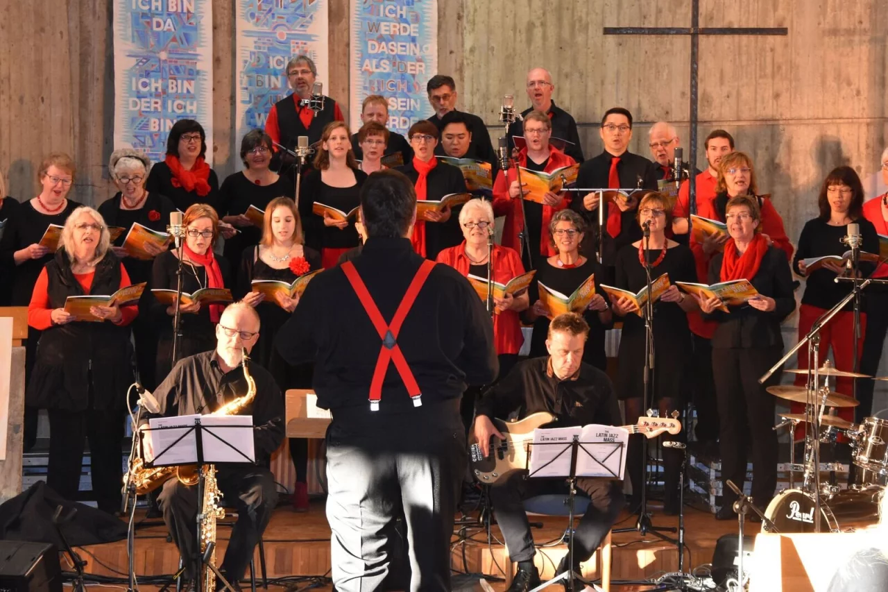 Diesmal präsentiert Klaus Belzer mit dem Projektchor Jazz4U und Band „The Latin Jazz Mass“, das der Komponist Martin Völlinger (1977*) für gemischten Chor, Jazz-Trio mit obligatem Saxophon und optionalen Soli konzipiert hat. Die Zuhörer erwarten dabei lateinamerikanische Rhythmen in Verbindung mit Jazz-Harmonien.