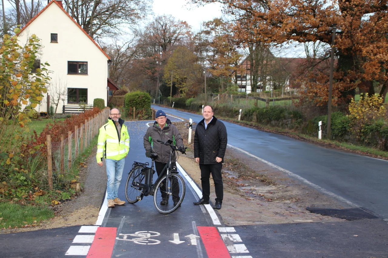 Der 1,5 Kilometer lange und zwei Meter breite Radweg wurde in zwei Bauabschnitten errichtet und biete nun eine sichere Verbindung für Radfahrer und Fußgänger. Dies sei vor allem für die vielen Kinder aus der Umgebung von großer Bedeutung, die zuvor auf die „stark befahrene und gefährliche Straße“ ausweichen mussten. „Der Weg bis zur Fertigstellung war alles andere als einfach. Zunächst waren zahlreiche Gespräche mit den Grundstückseigentümern notwendig, ohne die eine Umsetzung des Projekts nicht möglich gewesen wäre. Auch die baulichen Gegebenheiten der Straße stellten uns an mehreren Stellen vor Herausforderungen. So mussten wir an einer Stelle die Fahrbahn verengen, um den Bürgerradweg dort weiterzuführen. Künftig müssen Fahrzeuge an dieser Stelle bei Gegenverkehr warten“, so Fachbereichsleiter Detlef Wehrmann.