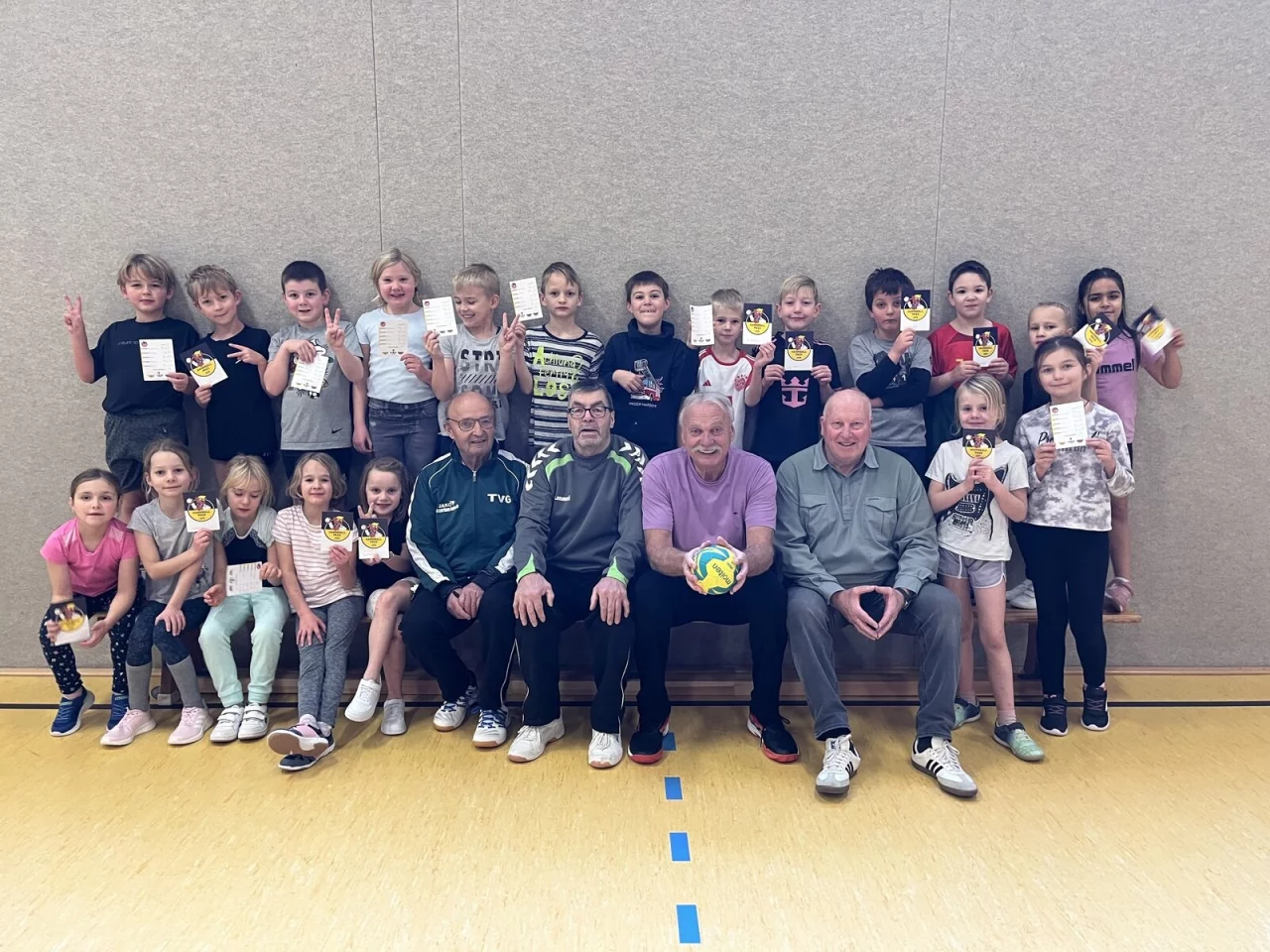 Über vier Tage im November betreute ein sechsköpfiges TVG-Team insgesamt neun Schulklassen mit rund 200 Kindern in der Turnhalle in Großenmarpe. Alle waren mit großem Eifer dabei und freuten sich über die Urkunden, die sie als Erinnerung an ihren erfolgreichen Hanniball-Pass erhielten. Durch spielerische und altersgerechte Übungen konnten die Schülerinnen und Schüler erste Berührungspunkte mit dem Handballsport sammeln.