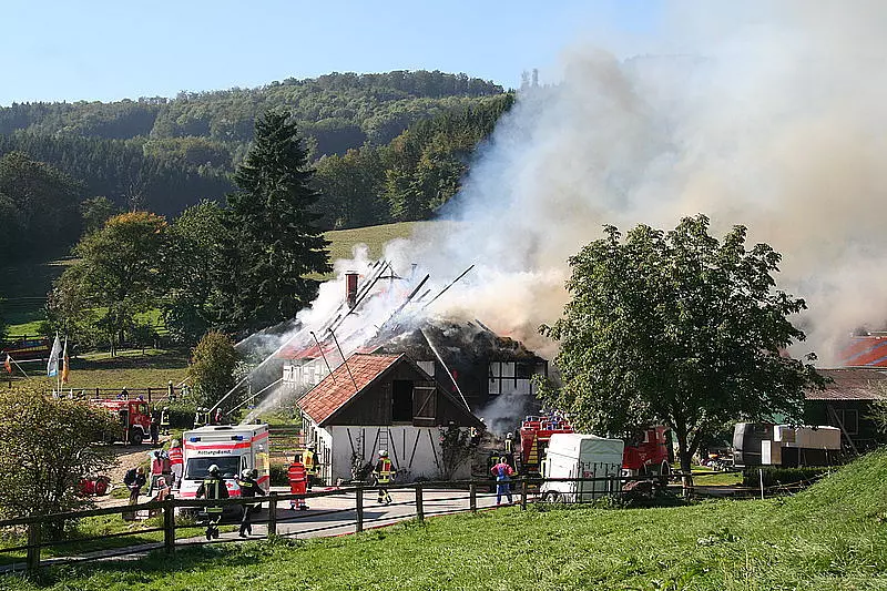 Hofbesitzer entdeckt Flammen im Dachgeschoss