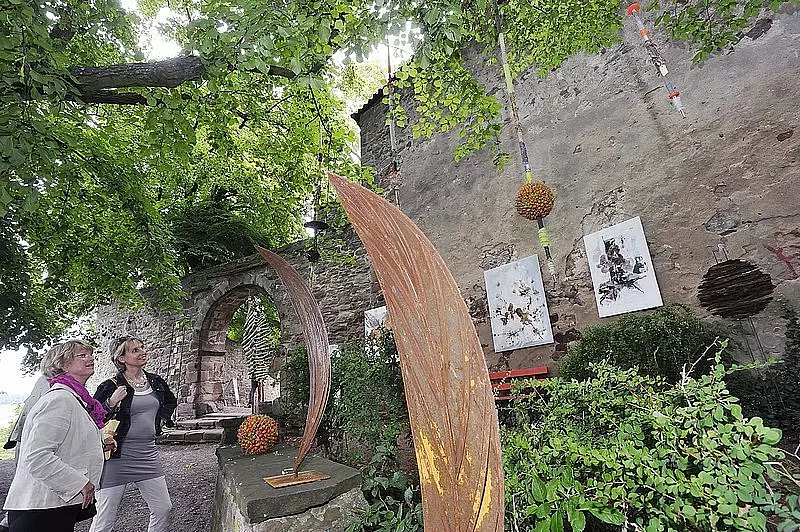 Neben Bildern und Skulpturen fielen dabei auch immer wieder Objekte für den Garten auf. Kunst oder Kunsthandwerk? Darauf sollte und wollte die Kunstmauer keine Antwort geben. Die Kreativität, die auch in Deko-Objekte für Baum und Garten einfloss, ließ immer wieder innehalten.