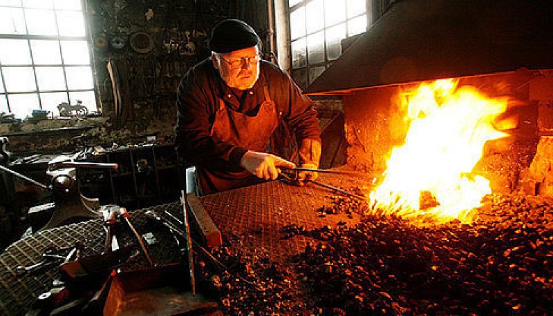 Blomberg-Donop (dl). Das Backsteingebäude an der Alten Chaussee Nummer 17 ist nach zwei Jahrzehnten aus dem Dornröschenschlaf erwacht. Die Esse ist wieder in Betrieb. Es glühen die Kohlen, der Hammerklang ist zu hören.