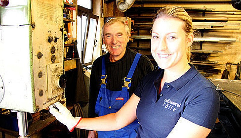 Detmold/Bentrup-Loßbruch. Aylin Tölle (23) hat ihren Job als Bankkauffrau an den Nagel gehängt, um die Schlosser-Werkstatt ihres Vaters zu übernehmen. Lothar Tölle hat vor 36 Jahren mit einem Betrieb in Brokhausen begonnen. Heute ist sein Meister-Betrieb an der Wasserbrede in Loßbruch zu finden, hat fünf Mitarbeiter und reichlich Aufträge. Eigentlich wollte er vor einem Jahr schon aufhören, aber keiner der Söhne und keiner der Mitarbeiter wollte den Betrieb übernehmen. Dabei lag die Lösung so nahe. Es dachte nur niemand daran - bis Tochter Aylin sagte: "Frag mich doch mal, Papa." Aylin Tölle arbeitete bis dato bei der Sparkasse Paderborn-Detmold, wo sie eine Ausbildung als Bankkauffrau absolviert hat.