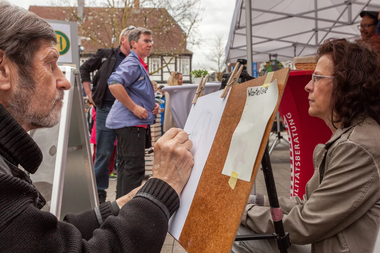 Außerdem war Maler Anatoli Netkal mit von der Partie, der willige Besucher im Profil zu Papier brachte. Wer sich zeichnen lassen wollte, der musste allerdings die erforderliche Geduld mitbringen, denn der Künstler nahm sich gut eine halbe Stunde Zeit, um gründlich und auch möglichst detailgetreu arbeiten zu können.