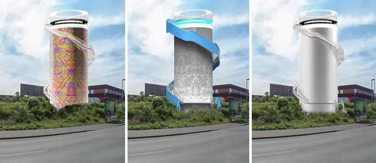Variante C (33 Prozent) haben die Stadtwerke selbst entwickelt. Tagsüber soll die Außenhülle des Wärmespeichers in schlichtem Grau zu sehen sein. Aber wenn es dunkel wird, soll der Turm sprichwörtlich zeigen, was in ihm steckt. Blaues Licht soll demnach anzeigen, dass der Speicher gerade voll ist. Rotes Licht würde verdeutlichen, dass er leer ist. Ein halb gefüllter Turm würde dann in beiden Farben beleuchtet werden.