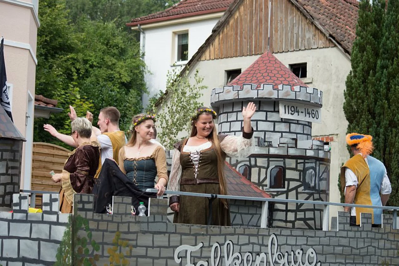 Vom Hohlen Weg aus wanderte der Zug schließlich los in Richtung Festplatz. Ob zu Fuß oder auf Rädern war jedem Tross selbst überlassen. Zu sehen waren Kühe, die mit Glöckchen klingelten, wandelnde Planschbecken oder zweibeinige Volleybälle – die Teilnehmer hatten sehr fantasievolle Ideen mit Liebe zum Detail umgesetzt.