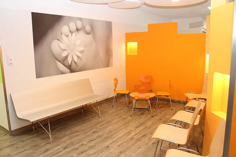 Die neuen Räume sind für Kind und Eltern so angenehm wie möglich gestaltet. Dazu gehören beispielsweise übergroße Bilder von Tierbabys an den Wänden. Wichtig: Die Räume bieten genug Platz, dass die bei der Behandlung anwesenden Eltern das Personal nicht behindern und im Notfall mehrere Ärzte und Schwestern gleichzeitig tätig werden können.