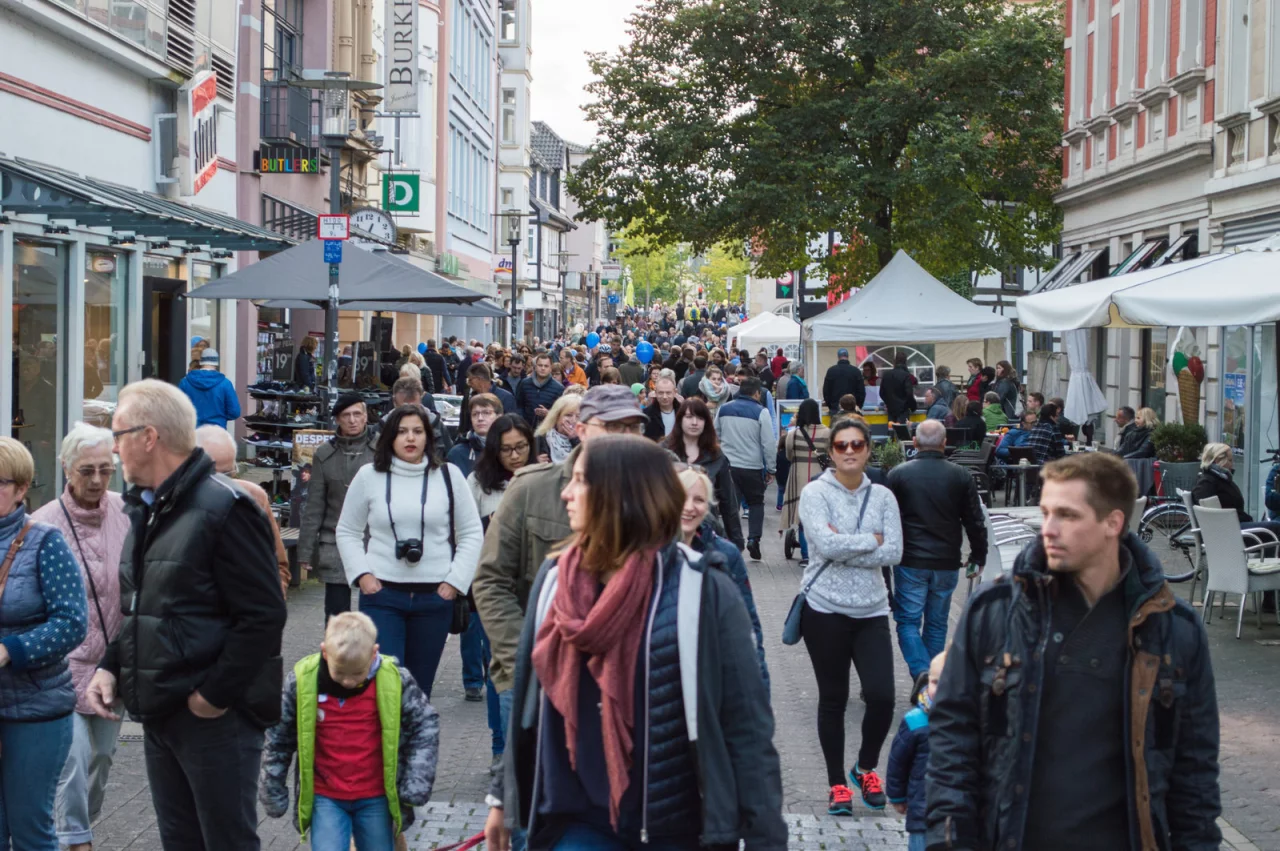 Während die Erwachsenen an den in großer Zahl ausgestellten Neuwagen reges Interesse zeigten, hatten die Kinder besonders am Karussell oder der Kinderlokomotive ihren Spaß, mit der sie nach Herzenslust einige Runden drehen konnten. Sonntagnachmittag schoben sich die Besucher dicht gedrängt durch die Innenstadt. Nur die farbenfrohen Stelzenläufer des GOP-Varietés sowie ein Straßenverkäufer mit seinem Strang bunter Heliumballons stachen noch aus der Menschenmenge hervor.