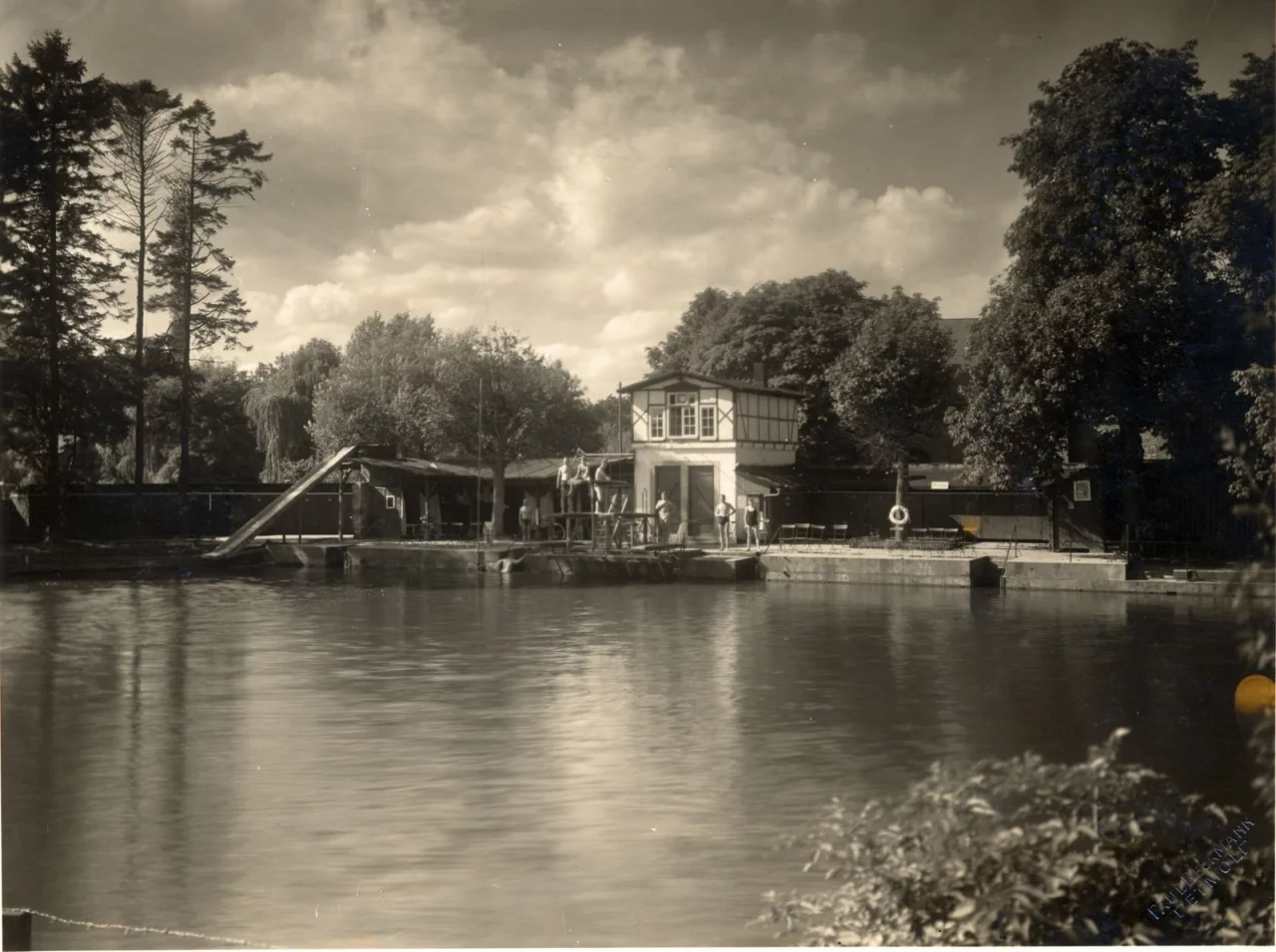 „Das Detmolder Freibad war zu meiner Schulzeit ein reiner Werrestau", berichtet Georg Klöpper, der Jahrgang 1924 ist und sich noch gut an die alten Tage erinnern kann. „Wir schwammen nicht nur mit Fröschen, sondern auch mit Wasserratten." Bei Hochwasser sei das Wasser gerne auch einmal braun gewesen. Außerdem sei dann ein Baumstamm, der über das Gewässer gelegt war, um den oberflächlichen Schmutz abzuhalten, gelöst worden. Der Unrat wurde freigegeben und floss weiter Richtung Weser.