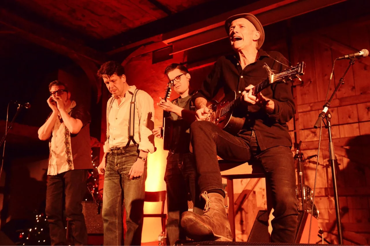 Gleich zwei starke Stimmen brachten „Black Patti" auf die Bühne. Dortselbst ergänzten sich Peter „Crow C" Krause und Ferdinand „Jelly Roll" Kraemer kongenial im Zusammenspiel. Beeindruckend der kernige Sound, den Kraemer mit seinen Stimmbändern erzeugte, während er parallel dazu die Saiten seiner Mandoline streichelte, die Peter Krause „Wimmer-Kürbis" nannte.