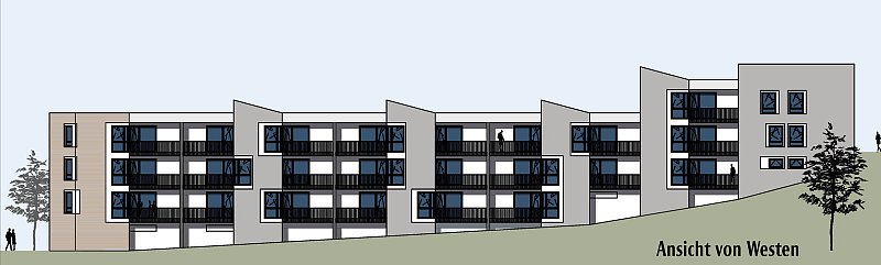 Die Grafik zeigt eine Ansicht des künftigen Wohnblocks, der an der Felix-Fechenbach-Straße entsteht und zukünftig 25 Wohnungen bieten wird. - © Grafik: Architekturbüro Rabbe Sugge
