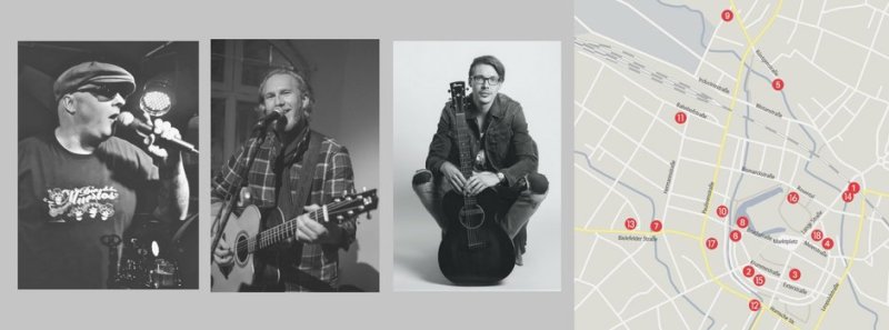 In unserer interaktiven Karte gibt's noch einmal die Veranstaltungsorte, Bands und Startzeiten auf einen Blick: