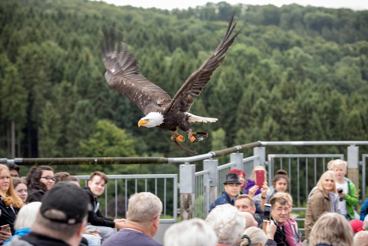 Kinder können zudem auf dem rustikalen Abenteuerspielplatz toben oder nebenan Alpakas und Ziegen streicheln, während Eltern und Großeltern auf der überdachten Terrasse den Blick ins Tal genießen. Die Adlerwarte ist täglich von 9.30 bis 17.30 Uhr geöffnet.