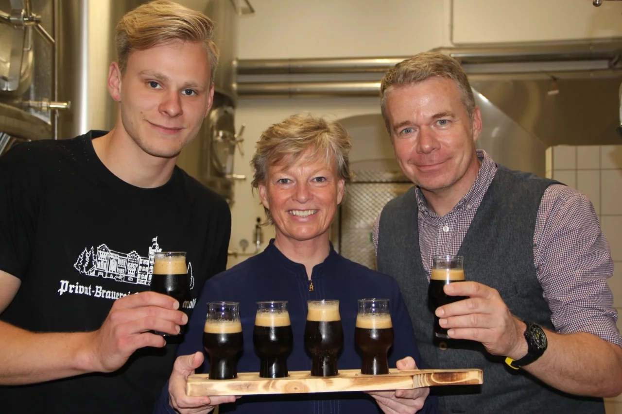 Der Brauprozess fürs „Chocolate Stout" hat Marvin Knebel einige schlaflose Nächte bereitet. Für den einjährigen Gesellen war das handwerkliche Brauen von Craft-Bier nach englischer Tradition zunächst Neuland. Doch mit Unterstützung des erfahrenen Biersommeliers Christian Mönnig vom Walsumer Brauhaus in Duisburg entwickelte er schließlich das neue „Chocolate Stout". Insgesamt dauerte die Vorbereitung rund eineinhalb Monate, ehe die dreitätige Gärung von 7.300 Litern Gerstensaft startete. „Vor zwei Monaten ist das Bier mit den fünf ausgewählten Sorten Malz eingebraut worden", erzählt Marvin Knebel.