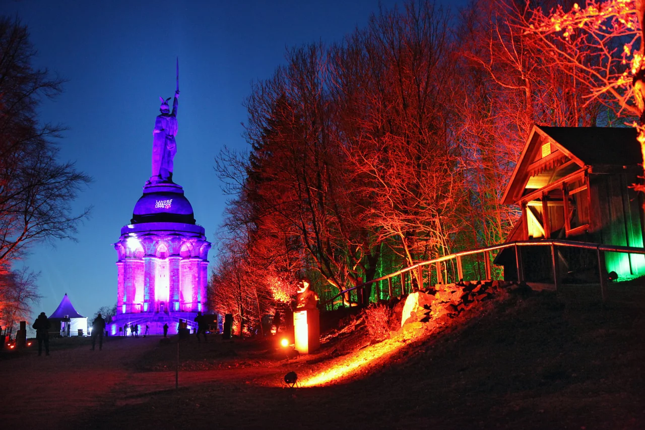 Zu erleben ist „Hermann leuchtet" zwischen dem 14. und 23. März, und zwar jeweils freitags und samstags von 18 bis 23 Uhr sowie sonntags bis donnerstags von 18 bis 22 Uhr. „Alle 45 Minuten wird es dramatisch: Der Hermann erstrahlt in ganz neuen Licht und wird mit aufwendiger Showtechnik in Bewegung gesetzt", so LightArt in der Ankündigung. Die vom Grammy-prämierten Showprogrammierer gestaltete Show erzeuge „Gänsehaut pur und lässt den Atem stocken". Zum Einsatz kämen zahlreiche High-End-Showlaser und ein „faszinierendes 3D-Videomapping". Die Dynamik der Show und die genutzten Videoeffekte würden den Hermann sprichwörtlich in Bewegung setzen – der Schwertwechsel sei kein Mythos mehr und könne sozusagen live miterlebt werden.