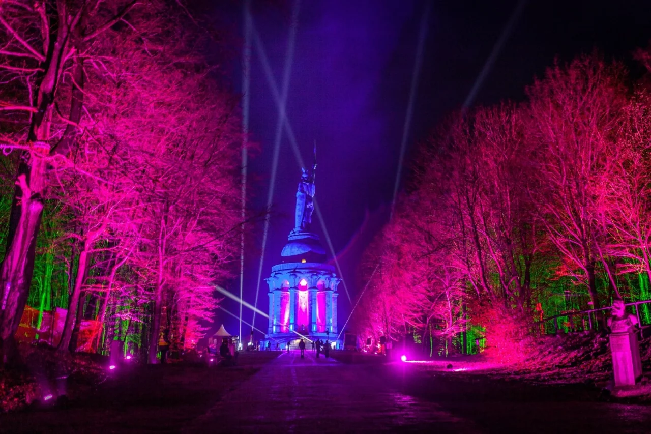 In diesem Jahr hatten sich auch mehrere Fernsehteams vorab am Denkmal eingefunden. Die Idee, den Hermann immer wieder mit Lasern anders in Szene zu setzen und mit einem 3D-Videomapping eine Geschichte zu erzählen, zieht bundesweite Kreise. Sehr zur Freude von Uwe Acker, der das Event in diesem Jahr zum 6. Mal organisiert.