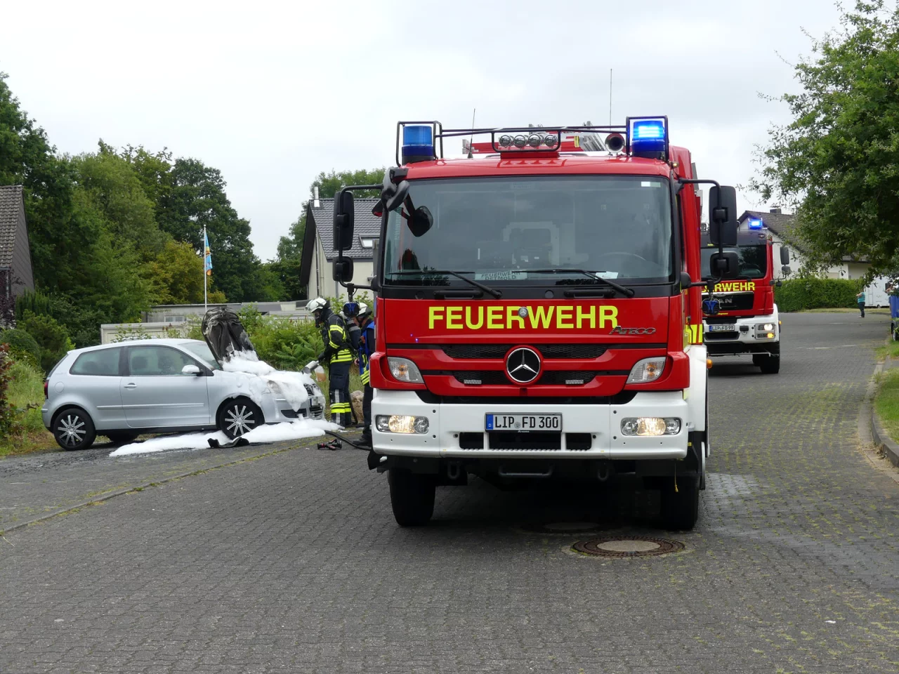 Detmold. Im Rötkersiek hat am Montagmittag ein Auto gebrannt. Das Feuer war im Motorraum des VW Polo ausgebrochen.