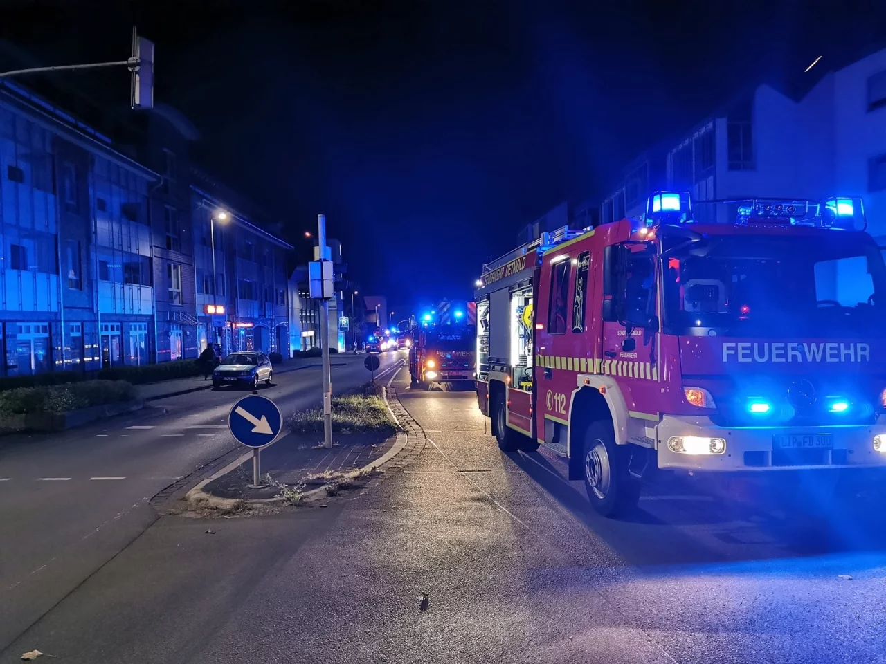 Um 22.14 Uhr ging ein zweiter Alarm bei der Feuerwehr ein. Gemeldet wurde laut Mitteilung ein Kellerbrand in der Lemgoer Straße. Alarmiert wurden die hauptamtlichen Kräfte, der Löschzug Mitte, die Löschgruppe Hiddesen und der Rettungsdienst.