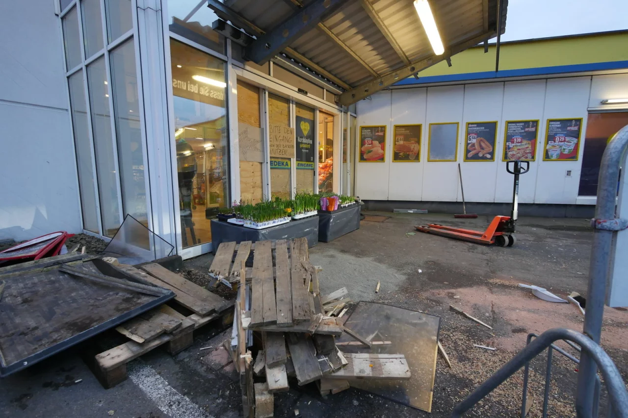 Wenngleich der Eingangsbereich noch etwas verwüstet ausschaut, hat der Markt weiterhin geöffnet. Kunden können den Markt über den kleinen Bäckereieingang betreten. "Gott sei Dank ist sonst niemandem etwas passiert", sagte Marktleiter Jürgen Hupfeld erleichtert.