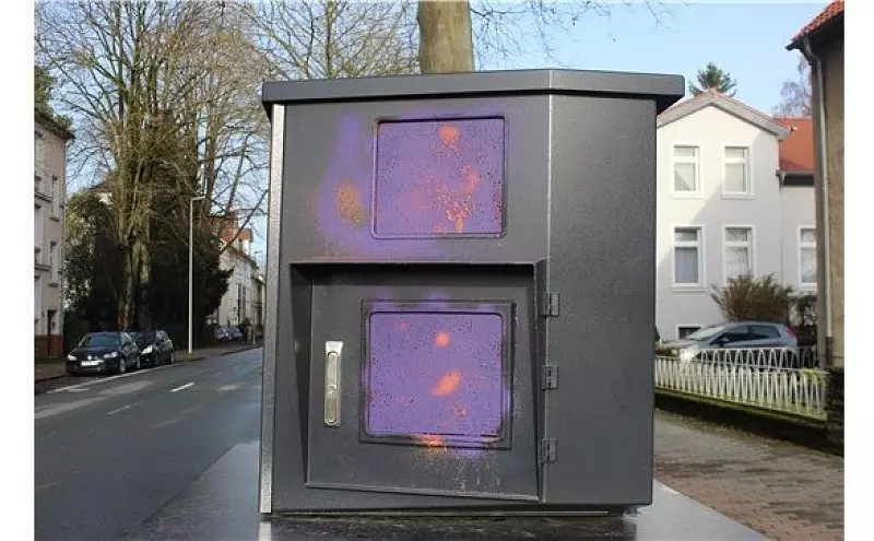 Detmold. In der Nacht zu Samstag wurde der mobile Blitzer der Stadt Detmold mit Farbschmierereien verunstaltet. Bislang unbekannte Täter besprühten unter anderem die Linsen des in der Elisabethstraße abgestellten mobilen Geschwindigkeitsmessgerätes. Hinweise zu den Verursachern nimmt die Polizeiwache Detmold oder die Kriminalpolizei unter 05231-6090 entgegen.