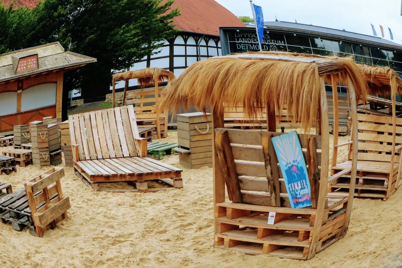 Detmold. Nur noch ein paar Handgriffe gibt es zu tun, dann kann der Startschuss fallen: Die Beach-Bar vor dem Landesmuseum startet am heutigen Freitag um 14 Uhr in die zweite Saison. Das Motto ist in diesem Jahr deutlich schlichter angesetzt: Palettenmöbel erinnern nach wie vor an eine echte Strand-Gastronomie am Meer, Piratenschiff und Kunterbuntes soll es aber nicht geben. Auf einer etwas ausgegliederten Terrassen-Fläche kommt noch eine hochwertigere Bestuhlung dazu, die zum Verweilen in Lounge-Atmosphäre mit Blick auf den Schlossgraben einlädt.