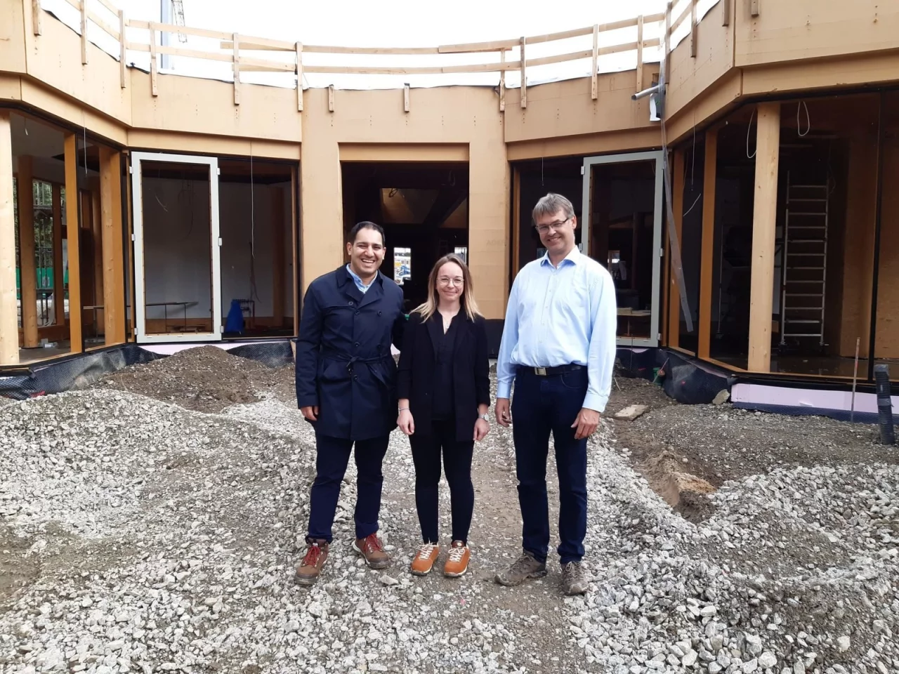 Detmold. Wer dieser Tage durch die Klingenbergstraße in Detmold fährt, kann beobachten, wie innerhalb weniger Wochen ein komplexer Holzbau entsteht. Dachdecker, Elektriker, Fensterbauer und viele andere Handwerker arbeiten in den Sommerferien mit Hochdruck am Neubau der Peter-Gläsel-Schule, damit die Kinder noch vor den Herbstferien ihr neues Schulgebäude beziehen und mit Leben füllen können.