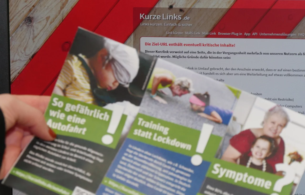 Das Sterberisiko am Coronavirus sei nicht größer als an einer Autofahrt, wird auf dem Flugblatt beispielsweise behauptet. Auch sei es besser, das Immunsystem zu trainieren, anstatt es durch einen Lockdown zu schwächen. Als Belege für die diversen Behauptungen des Flyers werden jeweils Internetadressen genannt, unter denen sich der Leser selbst informieren soll. Der für alle Internetadressen auf dem Flugblatt verwendete Link-Verkürzungsdienst „kurzelinks.de" blendet vor dem Aufruf aller angegeben Seiten einen Warnhinweis ein: „Die Ziel-URL enthält eventuell kritische Inhalte!" Der Kurzlink verweise auf eine Seite, die in der Vergangenheit mehrfach als fragwürdig gemeldet worden sei, heißt es erklärend.