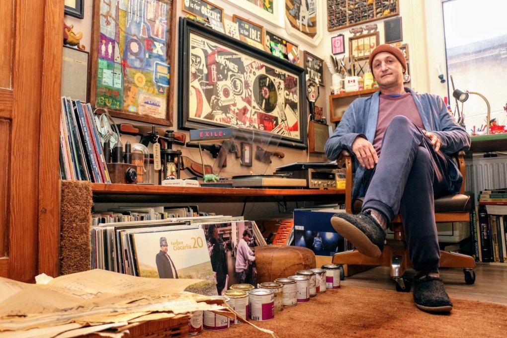 Ein offenes Museum ist Ralf Ellers Wohnung nicht, dafür ist die Detmolder Kneipe Paraplü schon seit vielen Jahren sein fester Ausstellungsort. Angefangen hat er dort mit einer Wand, inzwischen bestimmen seine Bilder von allen Seiten die Atmosphäre des Ladens. Wer an den Tischen vorbeiläuft, hört ab und an Gäste über Interpretationsansätze diskutieren. Die Möglichkeiten dazu scheinen unbegrenzt. „Es gibt nicht das eine Eureka", sagt der Erzieher. Jede seiner Arbeiten enthält einen prägnanten Satz, den sich der Künstler meist aus popkulturellen Referenzen zieht. „Oft stammt der Text aus Literatur, Musik oder Film", sagt er. Das Grundgerüst für die Bilder entsteht dann per Übertragungstechnik, dafür nutzt Ralf Ellers ein altes Antiskop, mit dem er ausgesuchte Vorlagen an die Leinwand wirft. In mühevoller Handarbeit zeichnet er dann die Konturen ab, bestimmt dabei für jedes Detail direkt, welche Farben er später nutzen will. Zeichnen könne er eigentlich gar nicht, sagt Ralf Ellers über sich selbst. „Ich mache eigentlich nur Malen nach Zahlen. Mit dem Unterschied, dass ich die Zahlen selbst male."