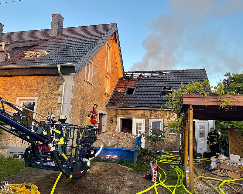 Wie die Feuerwehr mitteilt, war gegen 3.51 Uhr im Ortsteil Pivitsheide eine ausgebaute Wohnung aus noch ungeklärter Ursache in Brand geraten. Ein Nachbar konnte nach ersten Angaben die 21-jährige Bewohnerin aus der in Vollbrand stehenden Wohnung retten. Als kurz darauf die alarmierte Wehr mit dem hauptamtlichen Personal und vier ehrenamtlichen Einheiten den Einsatzort erreichte, schlugen bereits hohe Flammen aus Dach und Fenster. Anfangs bestand die Befürchtung, dass sich in dem Gebäude noch zwei weitere Personen aufhielten, daraufhin durchsuchte die Detmolder Wehr das Haus, es wurden aber keine weiteren Menschen gefunden.