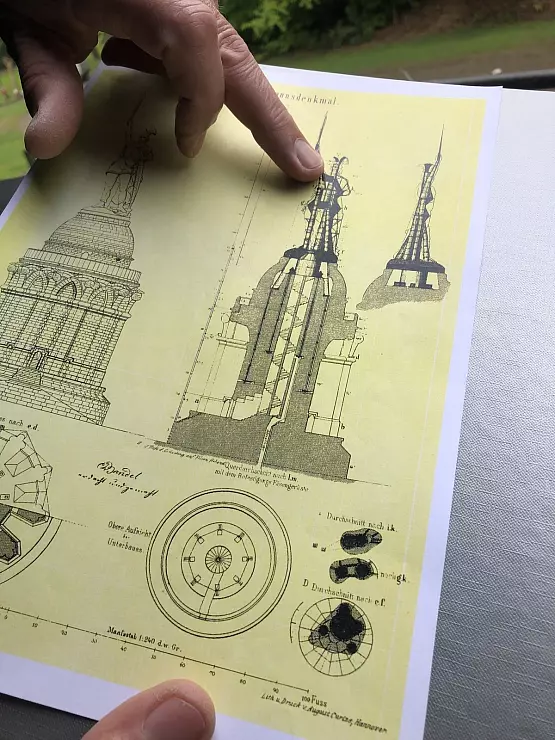 Von Bandel: Da hat mein Sohn Roderich mir geholfen. Wir haben eine neue moderne innere Konstruktion gebaut und die Platten für die Figur schließlich direkt vor Ort oben zusammengenietet, dafür haben wir extra im Monument selbst ein Schmiedefeuer entfacht. Aber sehen Sie, was wir geschafft haben: Arminius ist fast 27 Meter groß, der Kaiser Wilhelm in Porta Westfalica nur sieben!
