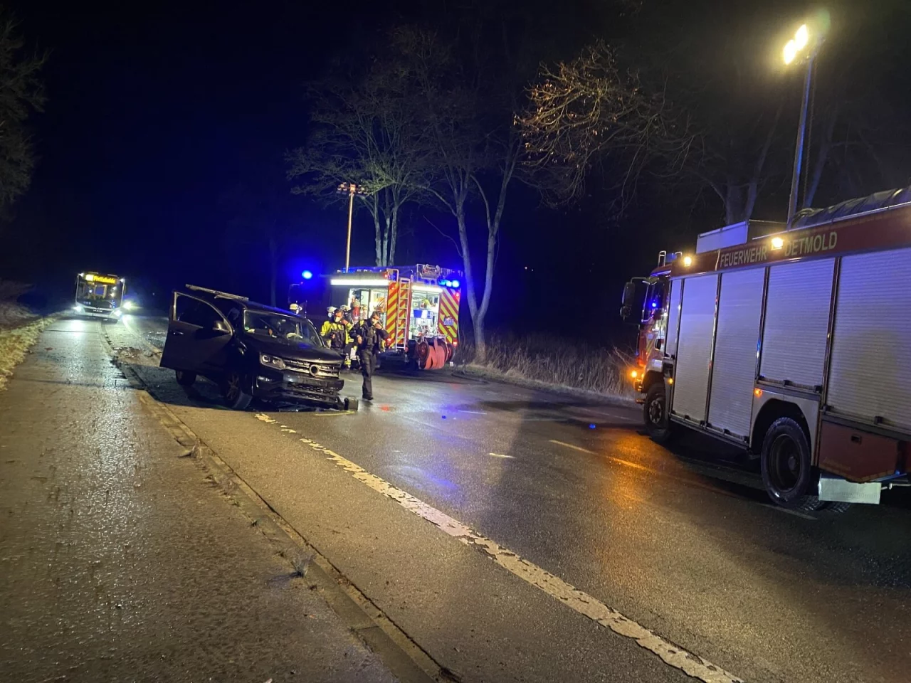 Detmold. Am Donnerstagmorgen ist ein 56-Jähriger Autofahrer in seinem Ford auf eisglatter Straße mit dem Gegenverkehr kollidiert und wurde schwer verletzt.