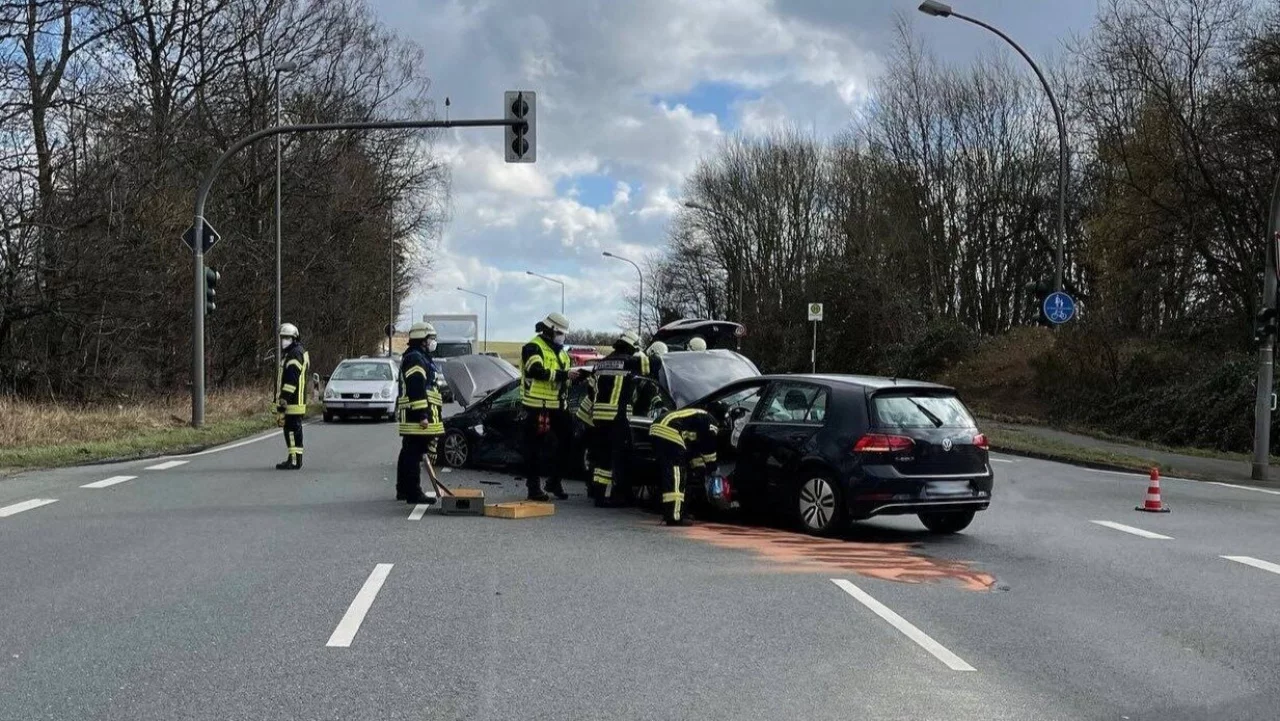 Zwei Fahrzeuge waren auf der Straße ineinander gekracht. Die Feuerwehr musste vor Ort zunächst die Batterie des E-Autos abklemmen und den Brandschutz sicherstellen. Wie sich vor Ort herausstellte, wurden drei Personen bei dem Unfall verletzt. Sie sind alle zur Behandlung ins Krankenhaus gebracht worden. Die Autos wurden abgeschleppt.