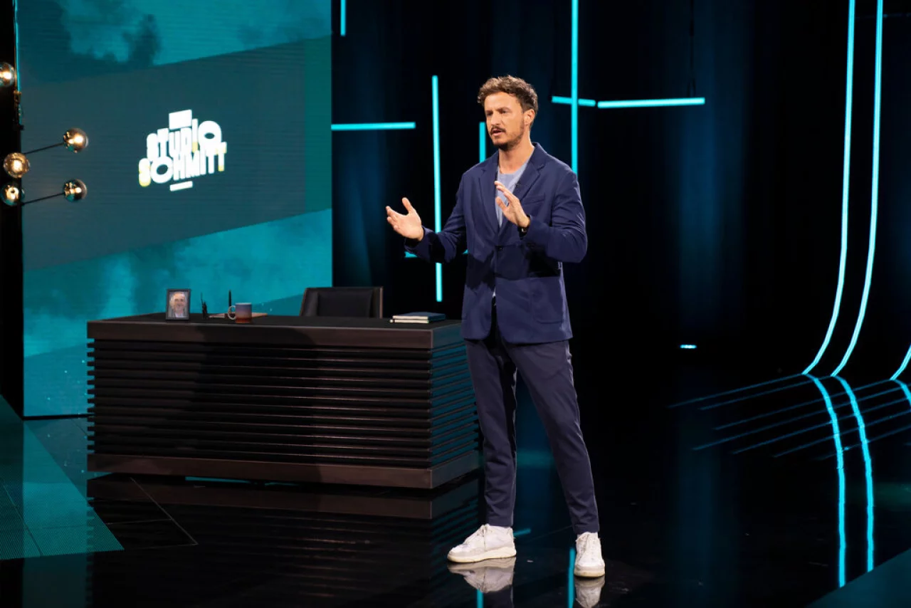 Zum Auftakt hat das Team gleich das komplette Konzept über Bord werfen müssen. Statt eines Humorfeuerwerks und lustiger Einspieler blieb der Moderator in Folge 1 bei einem kurzen Stand-up und gab der hochkarätigen Talkrunde aus Dr. Leon Windscheid, Samira El Ouassil und Vassili Golod genügend Raum, um über reale Ängste und den Krieg in der Ukraine zu sprechen. Es muss nicht immer lustig sein bei „Studio Schmitt", das hatte Tommi Schmitt schon vor seiner allerersten Sendung betont.