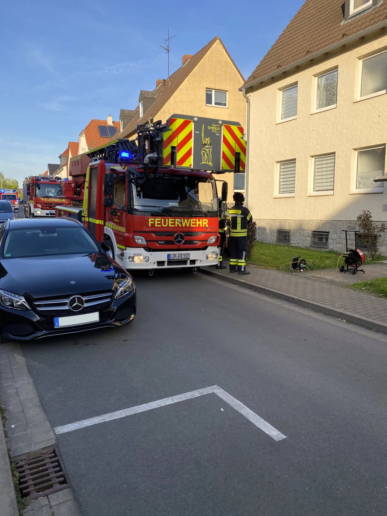 Detmold. Die Feuerwehr Detmold musste am heutigen Abend zu einem Mehrparteienhaus an der Pinneichenstraße ausrücken. Mehrere Rauchmelder hatten in einer der Wohnungen ausgelöst und zusätzlich war Brandgeruch wahrnehmbar. Die Einheiten Brokhausen, Hauptamtlich, Mitte und der Rettungsdienst rückten daraufhin an.