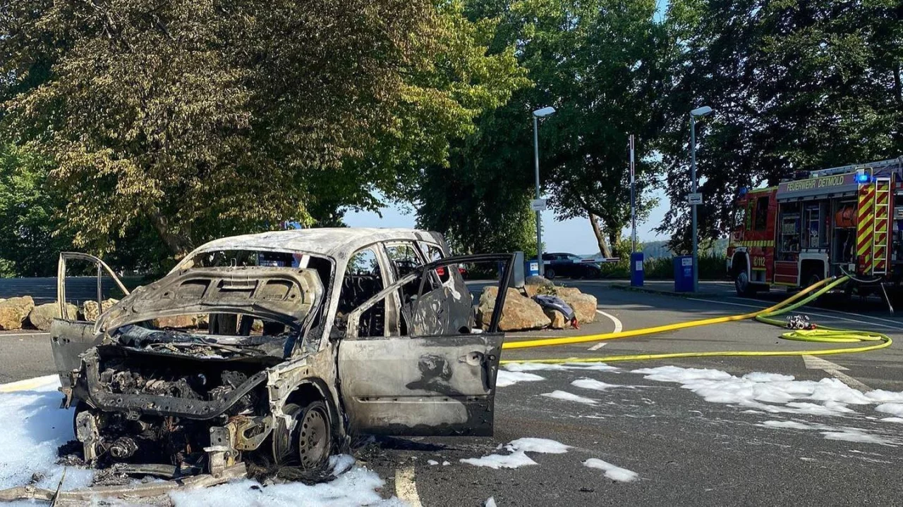Gegen 17 Uhr wurde die Feuerwehr alarmiert. Als die die hauptamtlichen Rettungskräfte vor Ort eintrafen, habe das Auto schon in Vollbrand gestanden, heißt es im Einsatzbericht. "Aufgrund weiterer Meldungen und der weithin sichtbaren Rauchentwicklung wurden der Löschzug Süd, der Löschzug Mitte mit einem Sonderfahrzeug und die Löschgruppe Hiddesen nachalarmiert." Die Feuerwehrleute brachten den Brand unter Kontrolle und löschten anschließend mit einem Schaumrohr. Ausgelaufene Betriebsmittel wurden gebunden und aufgenommen.