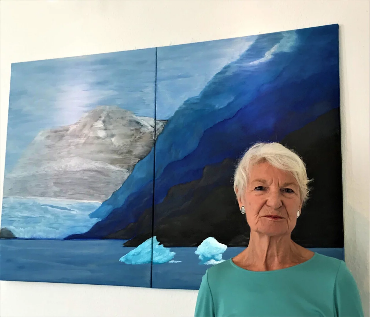 „Auf meinen Reisen an entlegenste Punkte der Erde habe ich die unterschiedlichsten Eindrücke gesammelt. Einen Ort, eine Landschaft kann ich nur malen, wenn ich auch dort gewesen bin", erläutert die Künstlerin ihre Motivwahl. Die ausgestellten Bilder spiegeln ihre Gefühle und Stimmungen wieder, die sie empfand, als sie auf einem geführten kleinen Motorboot entlang der Gletscherwände mit ihren Abbruchkanten diesem Naturschauspiel begegnete.