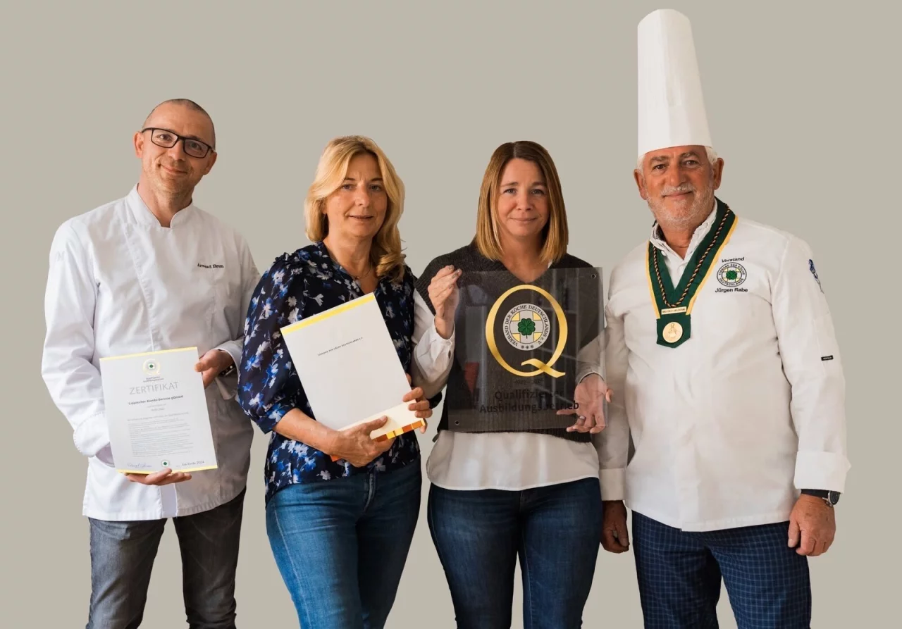 Seit fast zehn Jahren gibt es das Siegel „Qualifizierter Ausbildungsbetrieb“, das vom Verband der Köche Deutschland vergeben wird. Das Siegel erhalten Betriebe, die über einen langen Zeitraum eine besonders gute Kochausbildung anbieten und sich für ihre Azubis stark machen.