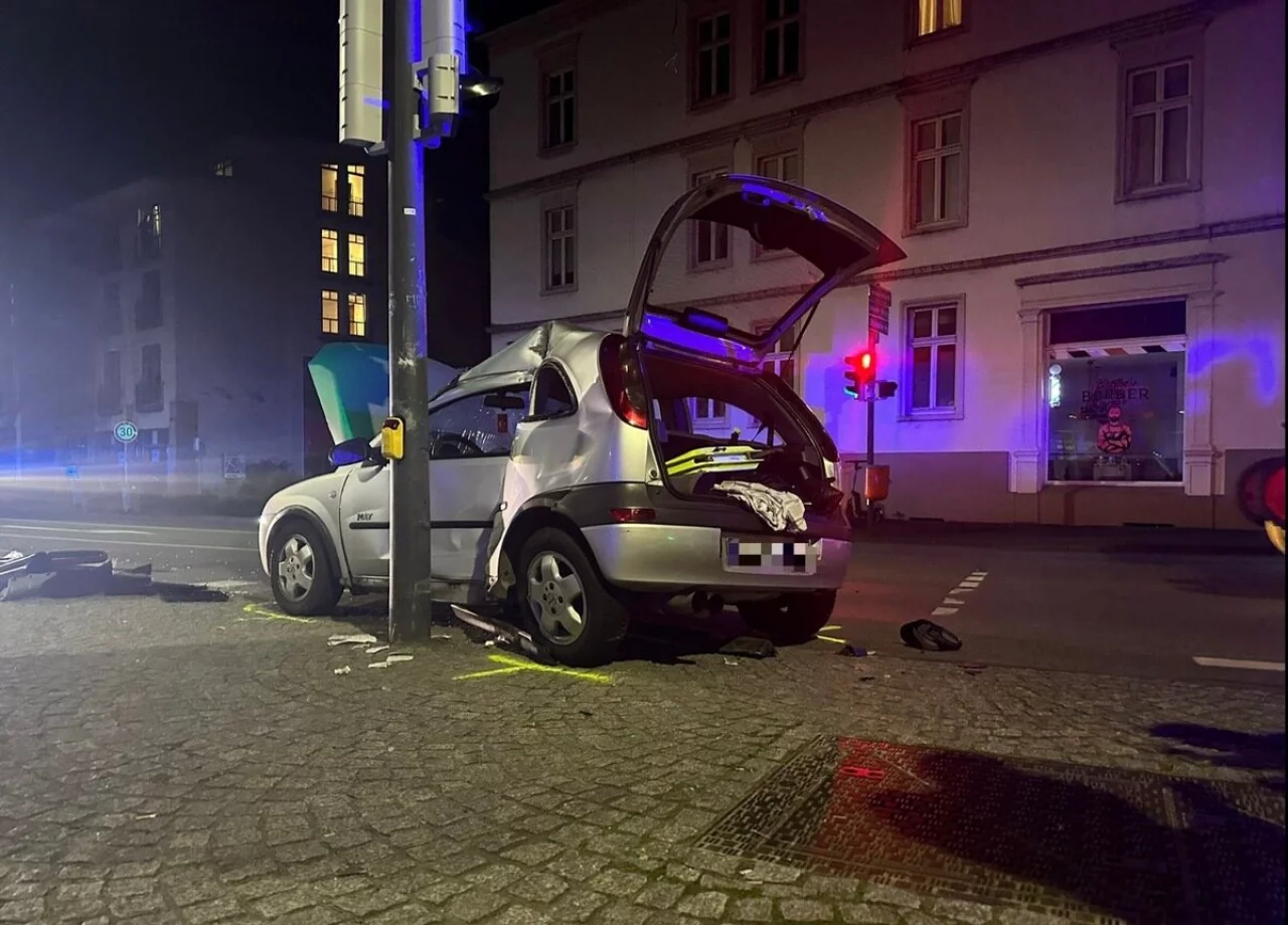 Durch den Zusammenstoß schleuderte der Opel nach links und prallte seitlich gegen den Masten einer Ampel. Der Corsa ist total zerstört worden. Der junge Fahrer wurde laut Polizei schwer verletzt. Er war zunächst in seinem Wagen eingeklemmt und musste von der Feuerwehr aus dem Wrack befreit werden. Seine beiden Mitfahrer konnten das Fahrzeug leicht verletzt verlassen. Auch am Volvo ist ein Sachschaden entstanden, dem Fahrer aber nichts passiert.