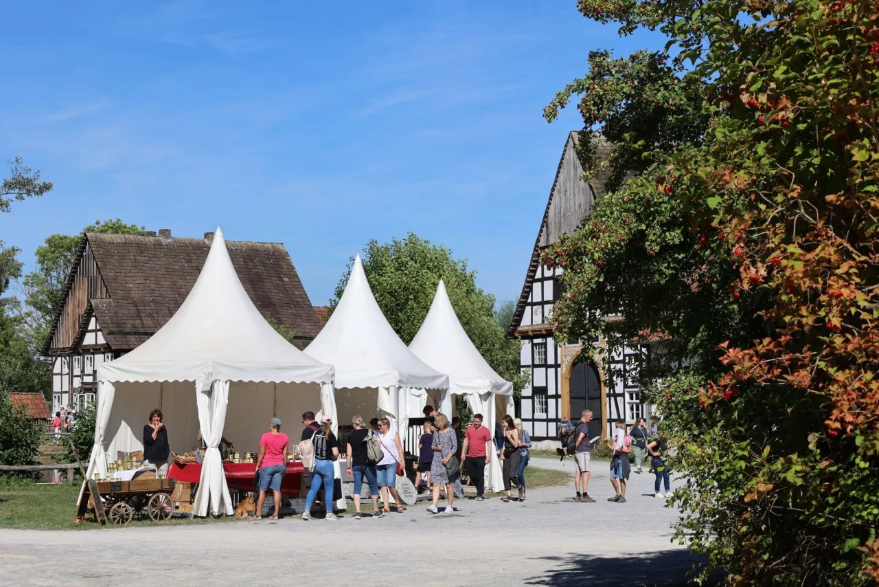 Vom Museumseingang über den Lippischen Meierhof bis hin zur Bockwindmühle und dem Paderborner Dorf gebe es an verschiedenen Standorten im Gelände die Möglichkeit, regionale Gerichte zu probieren, selbst kreativ zu werden oder auch Produkte wie beispielsweise Honig, Kunsthandwerk oder Bienenwachstücher mit nach Hause zu nehmen, schreibt der Landschaftsverband.
