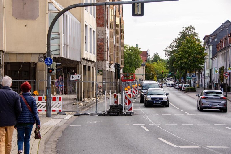 Der letzte Schritt der Abrissarbeiten hat auch Auswirkungen auf den Einmündungsbereich der Langen Straße. Der Bauzaun in der Langen Straße muss vor Hausnummer 2 (Brillen Linse) soweit herausgerückt werden, dass nur noch ein Gehweg von 1,50 Meter Breite bestehen bleibt. Eine Durchfahrt ist dort dann nicht mehr möglich. Feuerwehr und Rettungsdienst werden in dieser Zeit im Fall des Falles die Häuser 1-19 in der Langen Straße über die Exterstraße anfahren. Auch in der Grabenstraße besteht ab Hausnummer 6 bis zur Langen Straße nur noch ein Fußweg von 1,50 Meter Breite.