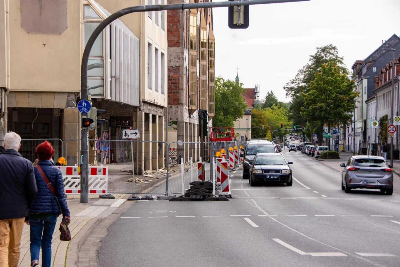 Detmold. Der Abbruch der ehemaligen Einkaufsgalerie am Hornschen Tor geht in seine finale Phase. Wie die Stadt mitteilt, gilt ab Montag, 16. Oktober, deshalb auf der Hornschen Straße ab Einmündung „Neustadt“ eine Einbahnstraßenregelung. Die Hornsche Straße ist dann in diesem Abschnitt nur noch stadtauswärts in Richtung Remmighausen/Horn-Bad Meinberg zu befahren. Der Verkehr aus Richtung Remmighausen/Horn-Bad Meinberg in Richtung Innenstadt wird an der Kreuzung Leopoldstraße nach rechts abgeleitet. Der öffentliche Personennahverkehr entfällt in dem betroffenen Bereich am Hornschen Tor beziehungsweise wird umgeleitet. Die Sperrung gilt bis Freitag, 24. November, zur Andreasmesse wird der Straßenabschnitt wieder in beide Richtungen offen sein.