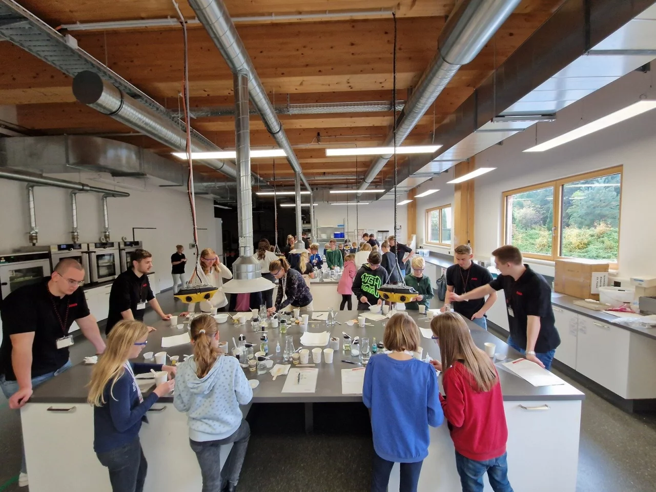 "Gemeinsam mit Dozent Christoph Funke näherten sich die Kinder der Magie der Chemie. Auf dem Plan standen zahlreiche Experimente. Dazu hatte sich Funke Verstärkung geholt: 19 Jowat-Azubis waren ebenfalls ins Labor gekommen. Sie führten die jungen Forscher durch die Versuche und halfen den Kindern, ihre Ergebnisse zu deuten", schreibt der Kreis.