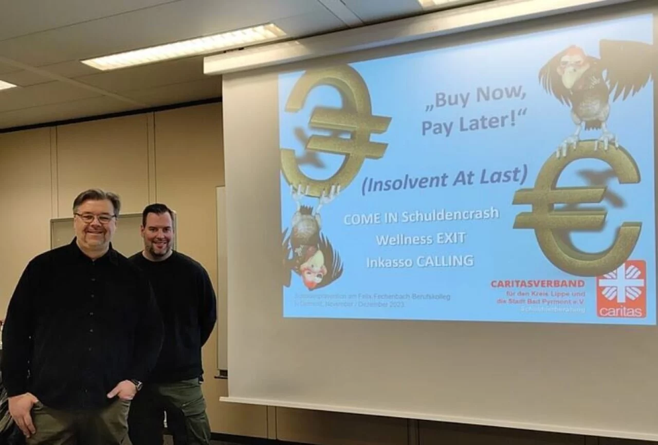 „Geplatzte Handyverträge und Rechnungen aus Online-Käufen nach dem Motto ,buy now, pay later führen bei geringem Einkommen schnell zu unbezahlten Rechnungen, über die die jungen Menschen den Überblick verlieren. Sie werden zu Hindernissen bei der Verwirklichung von Lebensträumen. Die eigene Wohnung und der Führerschein rücken plötzlich in weite Ferne“, weiß Rainer Bartonitschek, der erreichen will, dass sich die Jugendlichen breit informieren, wenn es um Geld geht und gab Tipps zu möglichen Informationsquellen.„Wir sind froh, dieses refinanzierte Projekt anbieten zu können und hoffen auf eine Fortsetzung des für Schulen kostenlosen Angebotes“, resümiert Bartonitschek. Er begrüßt insbesondere die Kooperation mit der Schulsozialarbeit des Felix Fechenbach Berufskollegs, weil gerade hier Problematiken der Schülerinnen und Schüler eher auf den Tisch kommen als im Fachunterricht.